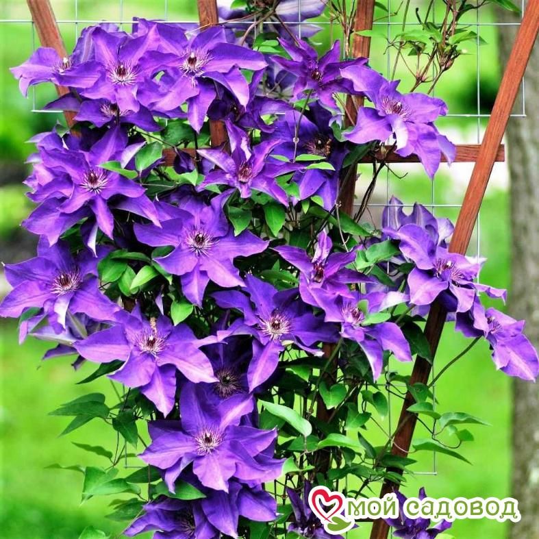 Сорт выведен на территории Великобритании в 1876 году. Назван он так в честь главы Королевского Садоводческого Общества Британии. Яркое акцентное растение станет главной жемчужиной сада. Купить недорого качественный посадочный материал можно в нашем интернет-магазине. Как выглядит растение? Вьющаяся кустарниковая лиана достигает в высоту 2 м, а в диаметре – 1 м. За день побеги вырастают на 5 – 10 см. Цветет растение на стеблях прошлого и текущего года (с мая по сентябрь). Листья овальные, темно-зеленые, размером 10 – 15 см. Цветы звездчатые, с оригинальной окраской. По краям лепестки яркого темно-фиолетового цвета, а ближе к центру – более светлые. По центру лепестков очерчена серебристая полоска. По краям они волнистые. Пыльники светлые, с бордовыми или коричневыми кончиками. Применение в ландшафтном дизайне Клематис быстро оплетает приготовленные для него опоры и создает роскошные цветущие «водопады». Благодаря компактным размерам растение подходит для выращивания на террасах и балконах. Это незаменимый элемент в оформлении ажурных арок, клумб и разных зон отдыха. Советы по посадке и выращиванию Сорт Зе Президент любит хорошо освещенные и закрытые от сквозняков места. А вот основание лианы рекомендуется скрыть в тени. Для этого вокруг куста сажают низкорослые цветы с небольшой корневой системой. Земля нужна рыхлая, хорошо дренированная, с низкой или нейтральной кислотностью. Уход за декоративной культурой несложный: достаточно вовремя проводить орошения, прополки и мульчирования. Из удобрений полезна органика и минеральные составы. Клематис не боится заморозков, но на зиму молодые экземпляры лучше укрыть. Для этого побеги снимают с опоры и обрезают по 2 типу. Затем сворачивают и засыпают древесной стружкой, торфом и осыпавшейся листвой. Сверху накрывают мешковиной. Положительные качества клематиса Зе Президент Представленный на фото сорт ценится за следующие качества: приятный аромат; нетребовательность к уходу; привлекательный внешний вид; высокие адаптивные способности; доступная цена. Купить недорого клематисы можно в интернет-магазине «Мой садовод». Просто отправьте понравившийся сорт в корзину, нажав на соответствующую кнопку. Мы бережно упакуем и максимально быстро доставим Вашу покупку ТК СДЭК или почтой России. Если возникнут вопросы или сложности с оформлением заказа, наши консультанты предоставят квалифицированную помощь. Мы гарантируем высокое качество посадочного материала и дорожим мнением каждого покупателя!